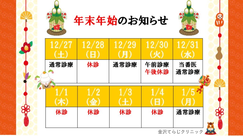 年始は2026年1月5日(月)より通常診療開始となります